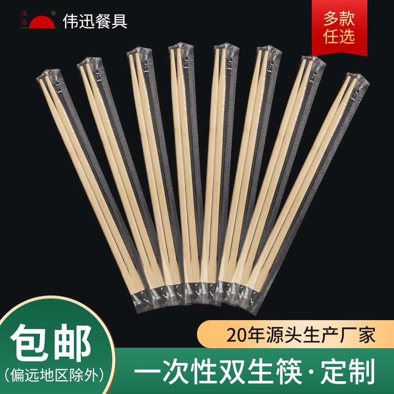 伟迅一次性筷子批发透明膜OPP双生筷餐厅外卖筷子厂家一 次性竹筷